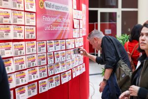 Ein besonderes Highlight war die Wall of Opportunities. Gemeinsam mit anderen Ausstellenden präsentierten wir dort aktuelle Stellenausschreibungen und machten politische Karrierechancen für die Festivalbesucher:innen unmittelbar erlebbar. So konnten wir nicht nur unsere Plattform vorstellen, sondern auch ganz konkret zur Vernetzung zwischen Talenten und Arbeitgeber:innen beitragen.